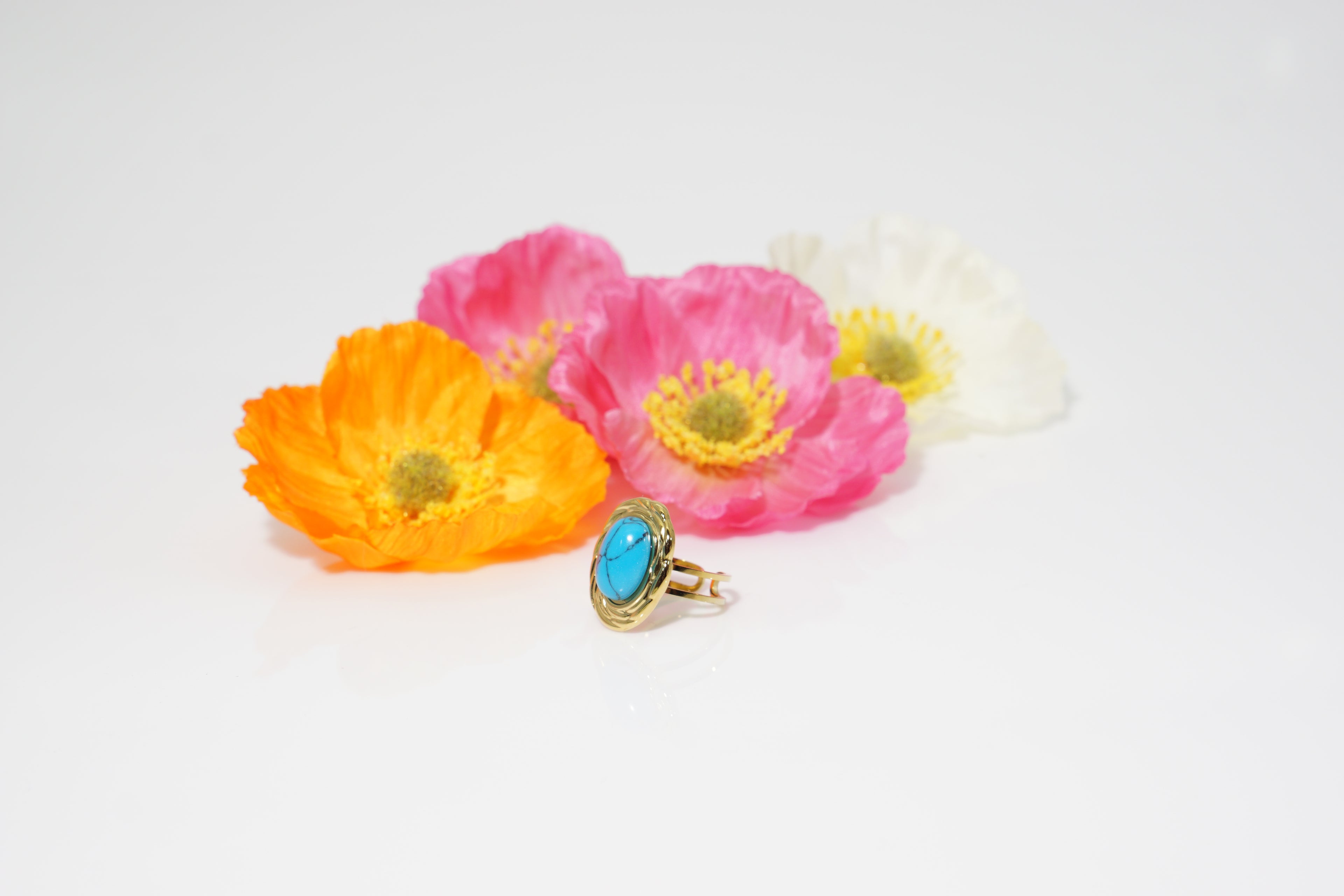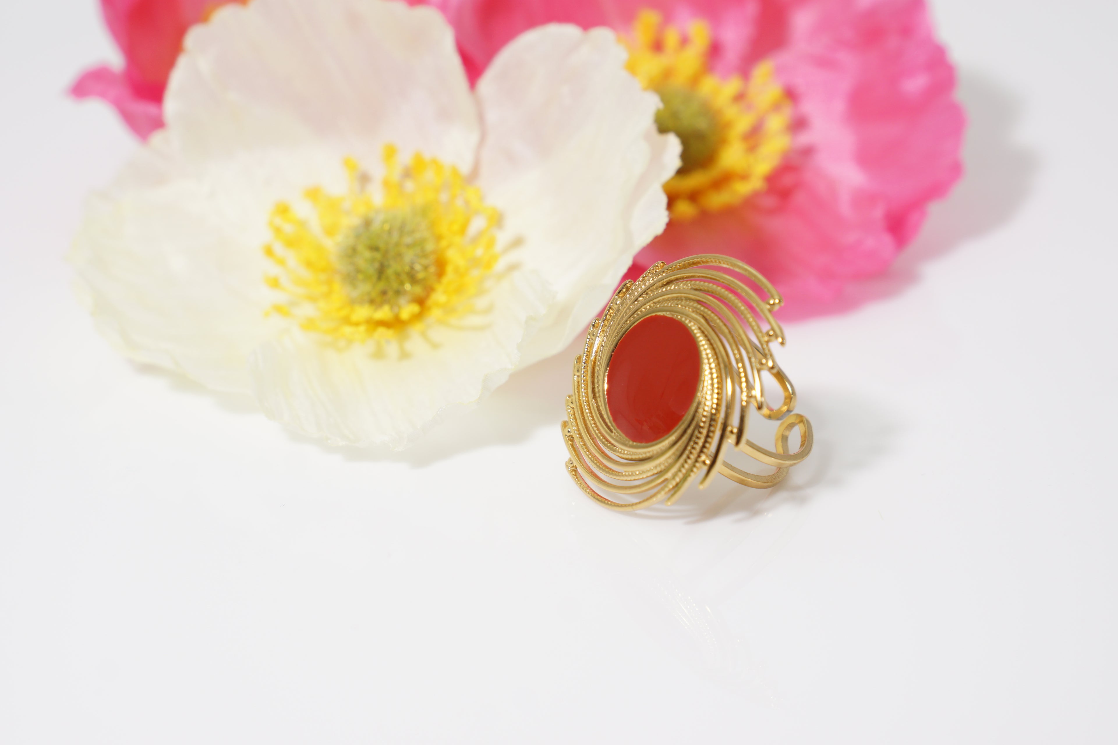 Retro Style Geometric Pattern Red Agate Open Ring - Electroplated