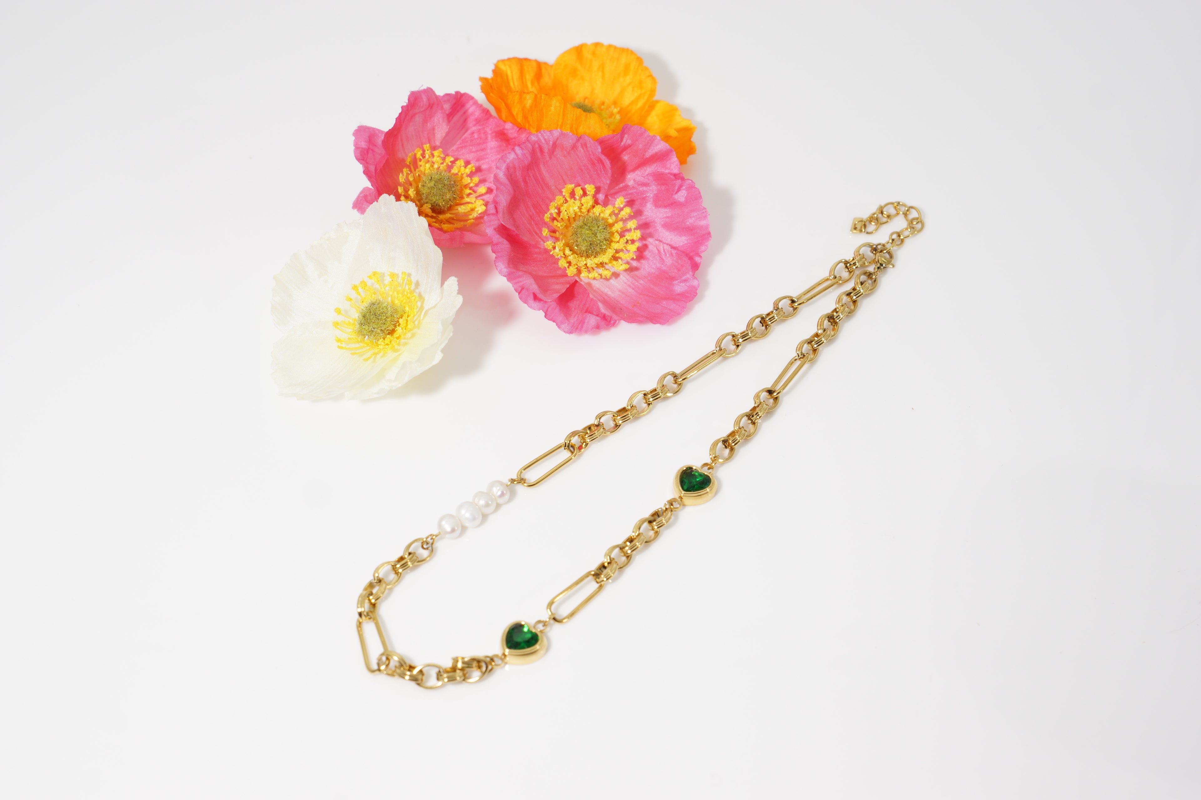 18K Gold-Plated Titanium Steel Crystal Bead Pendant Necklace